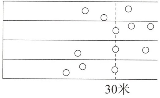 3. (新角度)淘淘、笑笑、思思和妙妙进行扔垒球比赛,每人扔3次,比赛结果如右图所示。这四名同学中扔垒球平均成绩最接近30米的是()。