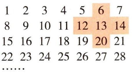 (1)在框出的5个数中,当中间的数是x时,左边的数是(),右边的数是(),上面的数是(),下面的数是()。