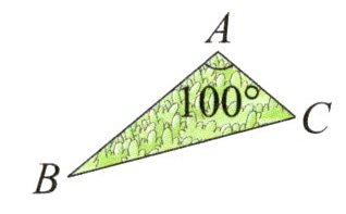 $100^{\circ }>90^{\circ }$,因此这块草地是钝角三角形