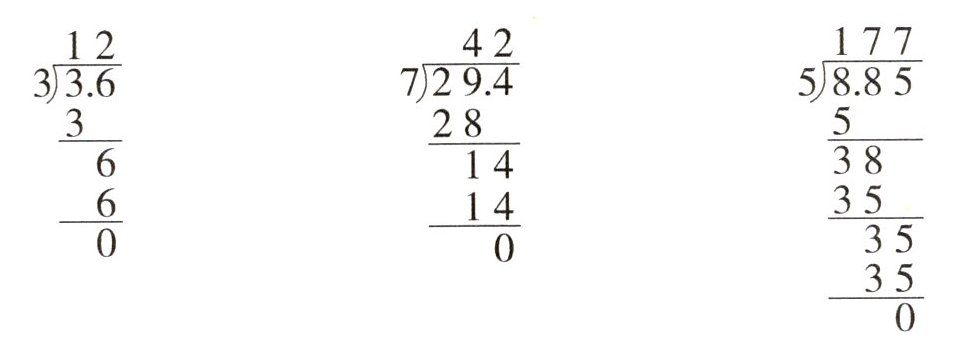 1.(算理理解)在下面各竖式的商中点上小数点。