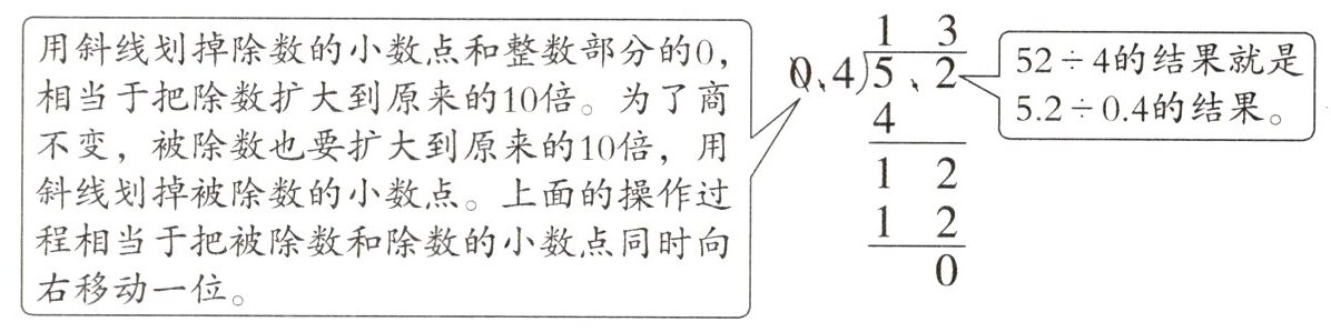 5.2÷0.4=(5.2×10)÷(0.4×10)=52÷4=13(时)