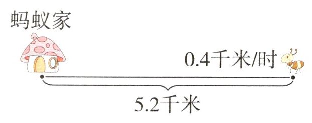 路程÷速度= 时间,蚂蚁回到自己家需要的时间列式为5.2÷0.4。