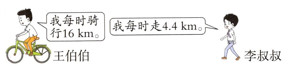 4.(泉州期末真题)王伯伯骑自行车的速度是李叔叔步行速度的几倍?(结果保留一位小数)