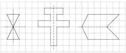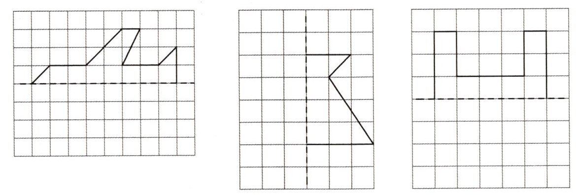 3.(教材改编)以虚线为对称轴,画出下面图形的轴对称图形。