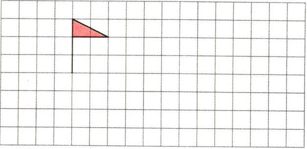 画出小旗先向右平移6格,再向下平移4格后的图形。