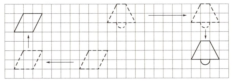 示例:图①先向上平移1格,再向右平移5格;图③先向下平移1格,再向左平移6格