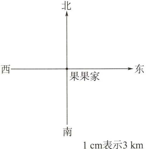 三 (名校期末真题)如图,以果果家为观测点。光明小学在果果家北偏东$30^{\circ }$方向上,距离果果家6km;百货大厦在果果家西偏南$45^{\circ }$方向上,距离果果家10.5km。请你在图上标出光明小学和百货大厦的位置。