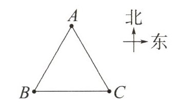 3. 右图是边长为5cm的等边三角形,A点在B点的( )。