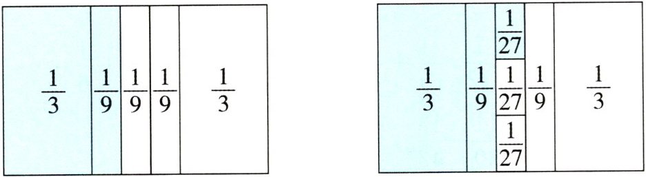 (1)$ \frac { 1 } { 3 } + \frac { 1 } { 9 } =$ $(2)$$ \frac { 1 } { 3 } + \frac { 1 } { 9 } + \frac { 1 } { 2 7 } = $