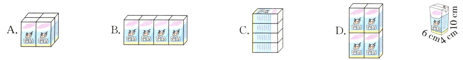 5. 把四盒酸奶包装成一包(每盒酸奶的规格如右下图),下面最节省包装纸的包装方法是( )。
