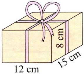 例2 出差回来的阿姨送给优优一份礼物,礼物的包装盒是一个长15cm、宽12cm、高8cm的长方体,打一个蝴蝶结用彩带15cm,包装这份礼物共用了多少厘米的彩带?