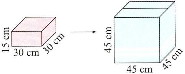 4. (仿例练习)如图,把长30cm、宽30cm、高15cm的长方体装进棱长为45cm的正方体纸箱里,最多能装下多少个?