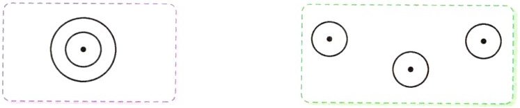 如上图,通过画圆心位置相同、半径不同和半径相同、圆心位置不同的圆时,发现圆心和半径的作用,即( )决定圆的位置,( )决定圆的大小。