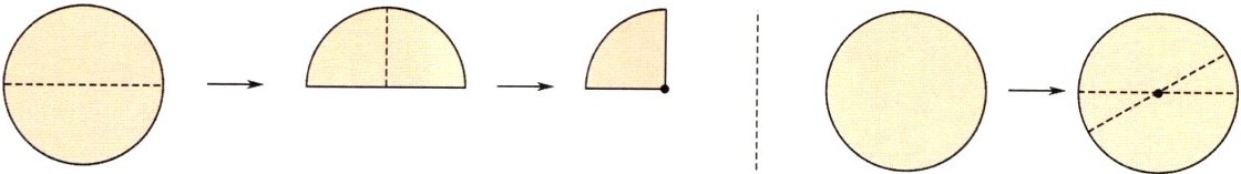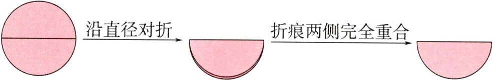 4. 你能想办法根据圆的对称性找到身边圆形纸片的圆心吗? 像下面所示的方法一样折一折,找一找。