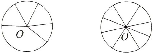 (1)在一个圆中任意画它的半径(如下面左图),发现可以画出无数条半径。