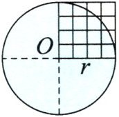 4. (数形结合)如下图,以正方形的边长为半径画一个圆,用数方格的方法计算出圆的面积,并填空。(每个小方格的面积表示1cm²)