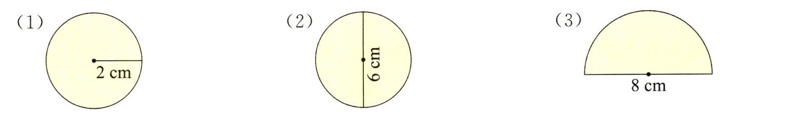 (3)$3.14×(8÷2)^{2}÷2=25.12(cm^{2})$