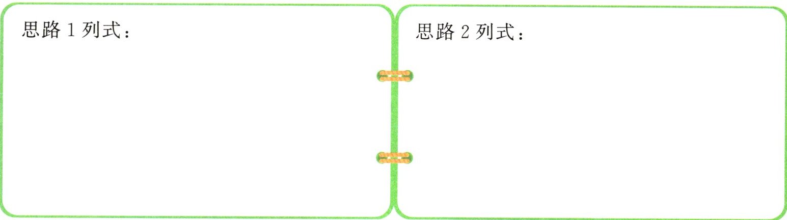 (2)思路2:综合线段图可以得出四年级的人数是六年级的$(\frac {2}{3}的\frac {3}{4})$,可以先求出四年级的人数是六年级的几分之几,再用六年级的人数乘这个分数即为四年级的人数。四年级的人数=( )年级的人数×( × )。