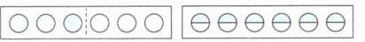2. (新角度)$\frac {1}{2}×6$可以表示什么?请分别在下图中画一画,涂一涂。(用两种方式表示)