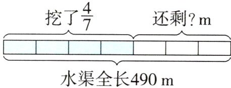 例1 东花村要挖一条长490m的水渠,已经挖了全长的$\frac {4}{7}$,还剩多少米没挖?