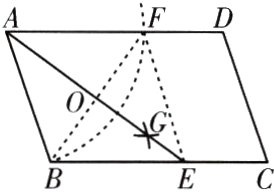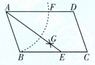 2. (青白江区一诊)如图,在$□ ABCD$中,以点$A$为圆心,$AB$的长为半径作弧,交$AD于点F$;分别以点$B$,$F$为圆心,大于$\frac{1}{2}BF$的长为半径作弧,两弧交于点$G$,连接$AG$并延长,交$BC于点E$。若$AE = 6$,$BF = 4$,则$AB$的长为______。