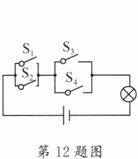 12. (成华区一诊)如图所示的电路中,随机闭合开关 $ S_{1} $,$ S_{2} $,$ S_{3} $,$ S_{4} $ 中的两个,能够点亮灯泡的概率为