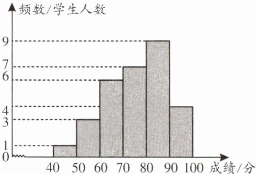 19. (西川)为落实我市关于开展中小学课后服务工作的要求,某学校开设了四门校本课程供学生选择:$ A $. 趣味数学;$ B $. 博乐阅读;$ C $. 快乐英语;$ D $. 硬笔书法。某年级共有 $ 100 $ 名学生选择了 $ A $ 课程,为了解本年级选择 $ A $ 课程学生的学习情况,从这 $ 100 $ 名学生中随机抽取了 $ 30 $ 名学生进行测试,将他们的成绩(百分制)分成六组,绘制成如图所示的频数分布直方图。