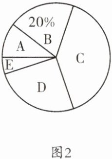 图2中研学活动地点C所在扇形的圆心角的度数:144°
