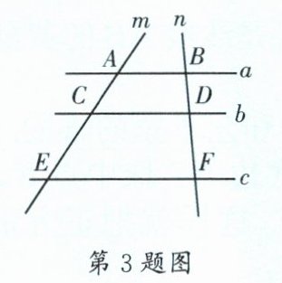 3. (武侯区一诊)如图,已知直线$a// b// c$,直线$m,n与a,b,c分别交于点A,C,E和点B,D,F$. 若$AC= 3,CE= 6,BD= 2$,则$DF= $ (