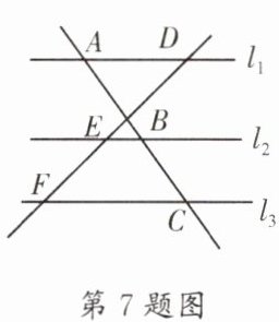 7. (天府新区一诊)如图,$l_{1}// l_{2}// l_{3}$,两条直线与这三条平行线分别交于点$A,B,C和点D,E,F$.已知$\frac {AB}{BC}= \frac {3}{2}$,则$\frac {DE}{DF}$的值为______