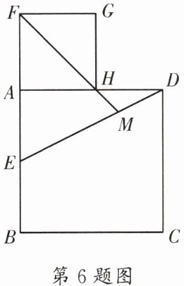 6. (高新区期末)如图,正方形 ABCD 的边长为 2,E 是 AB 的中点,连接 ED,延长 EA 至点 F,使$EF= ED$.以线段 AF 为边作正方形 AFGH,点 H 落在 AD 边上,连接 FH 并延长,交 ED 于点 M,则$\frac {DM}{DE}$的值为____.