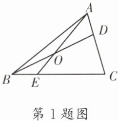 1. (嘉祥)如图,在$\triangle ABC$中,点 D 在 AC 边上,$AD:DC= 1:2$,O 是 BD 的中点,连接 AO 并延长交 BC 于点 E,则$BE:EC= $ ( )
