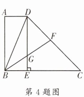 4. (锦江区一诊)如图,在四边形 ABCD 中,$AD// BC,AB⊥BC$,对角线 DB 平分$∠ADC$.过点 D 作$DE⊥BC$于点 E,BF 平分$∠DBC$交 DC 于点 F,交 DE 于点 G.若$BG= GF,BE= 1$,则 CD 的长为____.