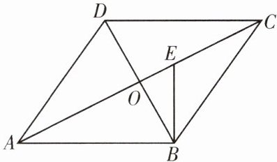 8. (七中育才)如图, 在菱形$ABCD$中, 对角线$AC, BD$相交于点O, $EB\perp AB$, 垂足为$B$, 交$AC于点E$.