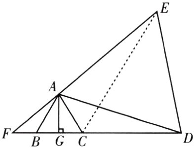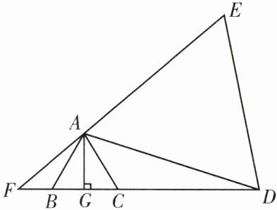 ∠EAD=∠FAD.在△AGF和△AGE中,$\begin{cases} \angle AGF = \angle AGE = 90^{\circ}, \\ AG = AG, \\ \angle FAG = \angle EAG, \end{cases}$