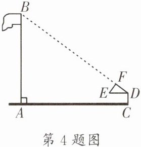 4. (成华区一诊)如图, 小明同学用木棍制成的$Rt\triangle DEF测量旗杆的高度AB$. 他调整自己的位置, 使斜边$DE保持与地面AC$平行, 直角边$DF与点B$在同一直线上. 已知$DF= 2$米, $EF= 1.5$米, 斜边$DE离地面的高度DC= 1.5$米, $AC= 14$米, 则旗杆的高度$AB= $