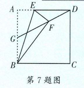 7.(龙泉驿区一诊)如图,在正方形$ABCD$中,$AB= 2$,$E为AD$上一动点,将三角形$ABE沿BE$折叠,点$A落在点F$处,连接$DF$并延长,与边$AB交于点G$.若$G为AB$的中点,则$AE$的长为