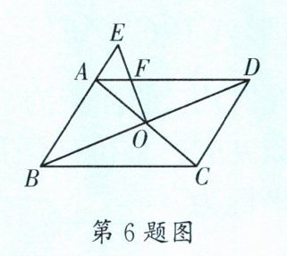 6.(成华区一诊)如图,在$□ ABCD$中,对角线$AC$,$BD相交于点O$,在$BA的延长线上取一点E$,连接$OE交AD于点F$.若$CD= 5$,$BC= 8$,$AE= 2$,则$AF= $____.