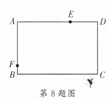8. (锦江区二诊) 如图, 在矩形 $ABCD$ 中, $AB = 2\sqrt{2}, AD = 5$. 折叠矩形 $ABCD$ 使得点 $A$ 恰好落在边 $BC$ 上, 折痕与边 $AD$ 相交于点 $E$, 与矩形的另一边相交于点 $F$. 若 $DE = 2$, 则 $BF$ 的长为____.