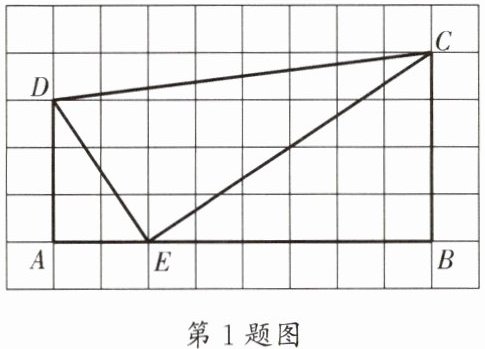 1. (锦江区期末)如图,在$10×6$的方格纸中,每个小方格都是边长为1的正方形,我们称每个小正方形的顶点为格点,以格点为顶点的图形称为格点图形。E是格点四边形ABCD的AB边上的一动点,连接ED,EC。若格点$△DAE与△EBC$相似,则$DE+EC$的长为 (