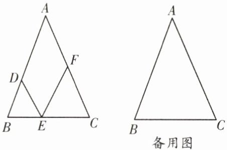 5.(西川)如图,在$△ABC$中,$AB= AC= 6$,$BC= 5$,D是AB上的一点,$BD= 2$,E是BC上的一动点,连接DE,并作$∠DEF= ∠B$,EF交线段AC于点F.