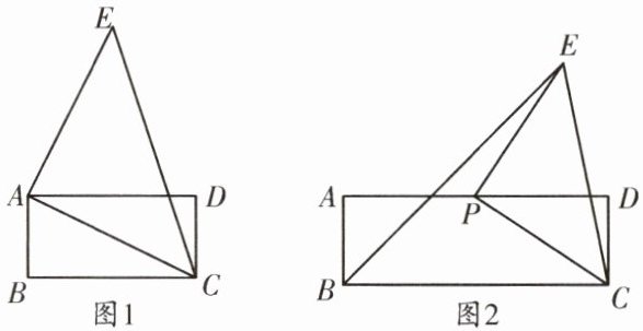 (1)证明:$\because$ 四边形 $ABCD$ 是矩形,$AC$ 是对角线,$\therefore \angle B=90^{\circ}$,$\therefore AC^{2}=AB^{2}+BC^{2}$. $\because$ 以 $AC$ 为直角边作等腰直角三角形 $EAC$,且 $\angle EAC=90^{\circ}$,$\therefore EC^{2}=2AC^{2}=2AB^{2}+2BC^{2}$.