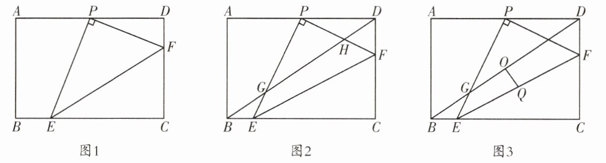 (3) 如图 3,连接 $BD$,$O$ 为 $BD$ 的中点,$Q$ 为 $EF$ 的中点,连接 $OQ$。