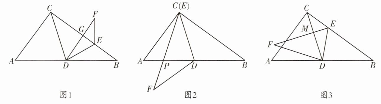 (3)如图 3,线段 EF 与线段 CD 相交于点 M,是否存在点 E,使得$△DFM$为直角三角形? 若存在,请直接写出 BE 的长;若不存在,请说明理由.