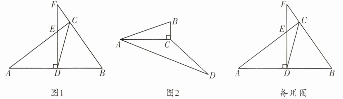 8. (锦江区一诊)如图 1,在 $\triangle ABC$ 中,$E$ 为 $AC$ 边上一点,$ED\perp AB$ 于点 $D$,延长 $DE$,$BC$ 相交于点 $F$,$AD\cdot BD= DE\cdot DF$。