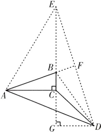 (3)解:如图,点$D$关于直线$AB$的对称点$E$恰好在$CB$的延长线上,连接$ED$,延长$AB$交$ED$于点$F$,过点$D$作$DG\perp BC$交$BC$的延长线于点$G$,连接$AE$。