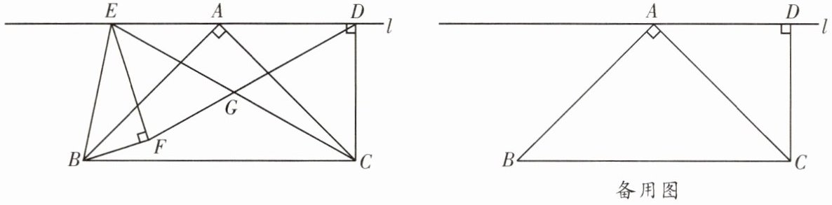 10. (青羊区一诊)已知在 $\triangle ABC$ 中,$AB= AC$,$\angle BAC= 90^{\circ}$,过点 $A$ 作直线 $DA// BC$,$CD\perp AD$ 于点 $D$,$E$ 是射线 $DA$ 上一动点,连接 $BE$,$CE$,在 $BE$ 右侧作 $\triangle BEF$,使得 $\triangle BEF\backsim\triangle CED$。