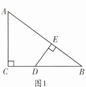 (1)如图1,点D在BC边上,$DE⊥AB$,垂足为E,已知$CD= DE$,求BE的长.