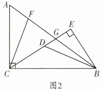 (2)将(1)中的$Rt\triangle BDE$绕点B顺时针旋转,连接CE,交直线AB于点G,在CE上方作$∠FCE= ∠ABC,∠FCE$的边与AB的交点为F.