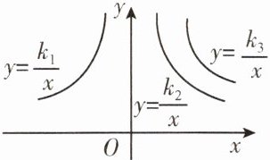 4. (七中育才)如图是三个反比例函数$y= \frac {k_{1}}{x},y= \frac {k_{2}}{x},y= \frac {k_{3}}{x}$在x轴上方的图象,由此观察得到k_1,k_2,k_3的大小关系为(